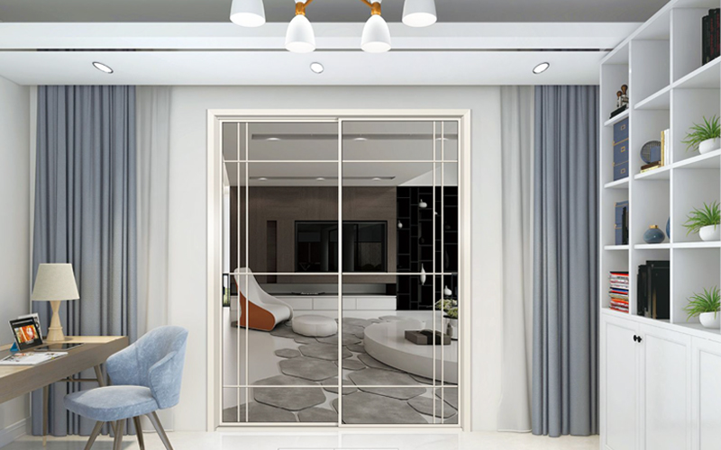 .门扇装有防摆防晃装置,使之推拉过程中轻快:无噪音。